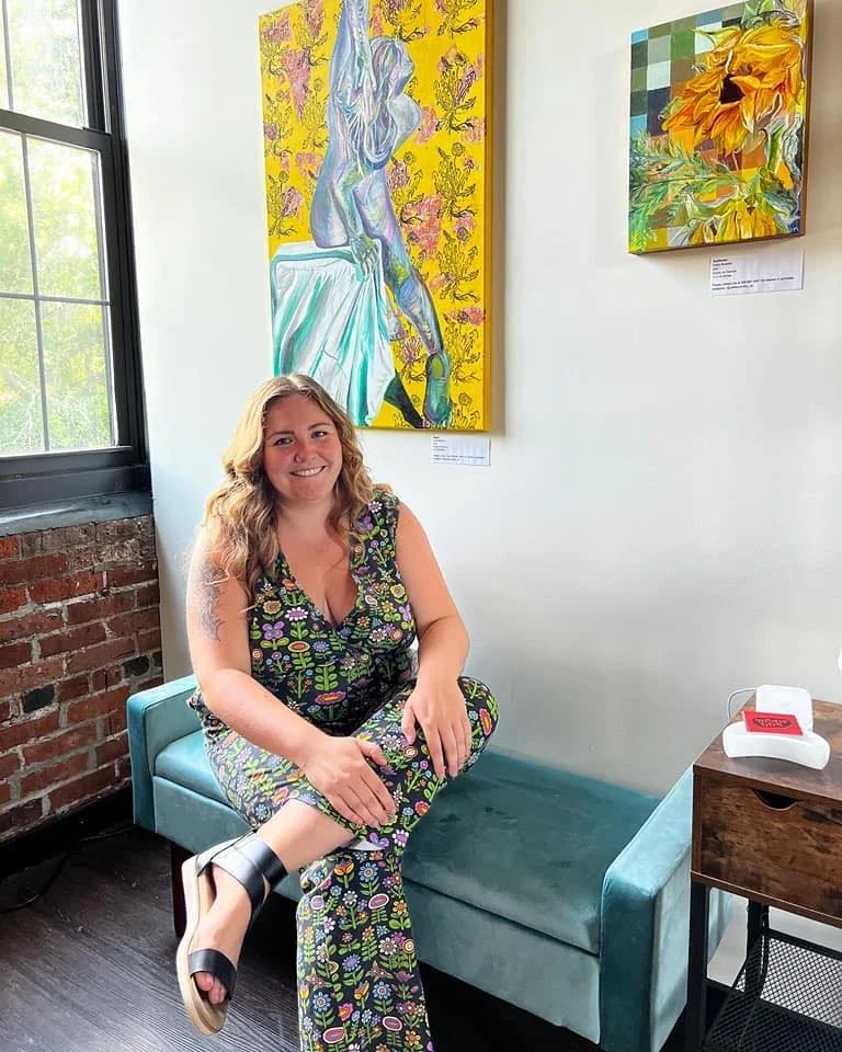 Callie is an artist and art educator based in Providence, RI who works as a high school art teacher. Her art is inspired by nature and personal experiences, featuring vibrant colors, emotive female forms, playful patterns, and elements of mixed media and collage.